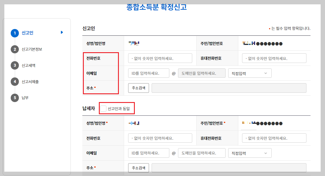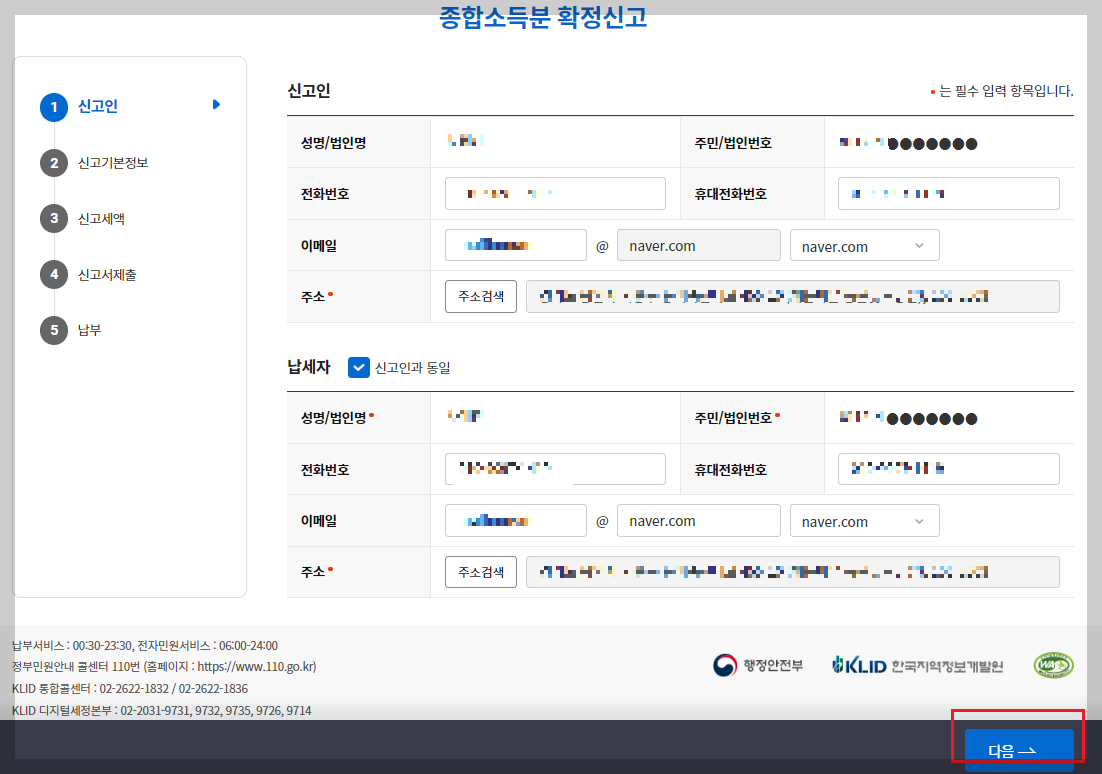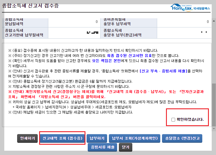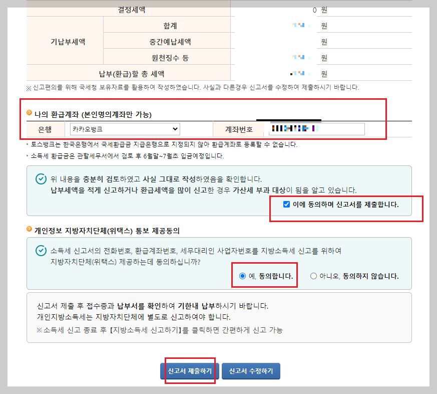 동의 클릭, [신고서 제출하기] 누릅니다.