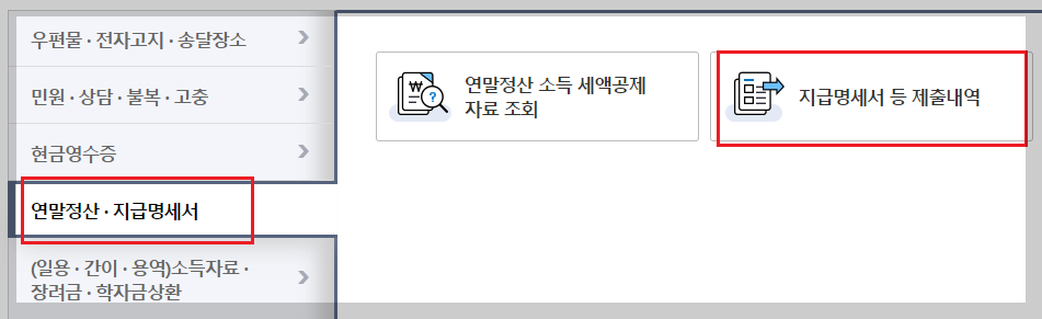 연말정산·지급명세서 → 지급명세서 등 제출내역
