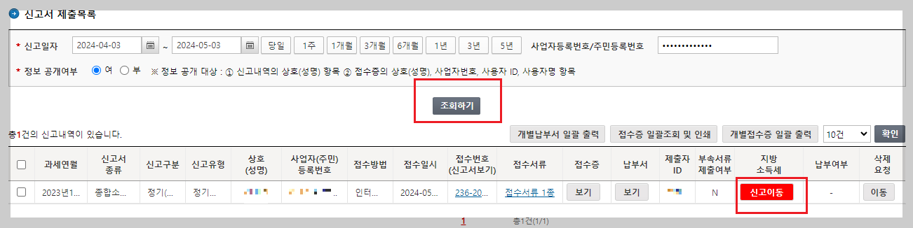 하단에 1건의 신고내역이 있다고 뜹니다.